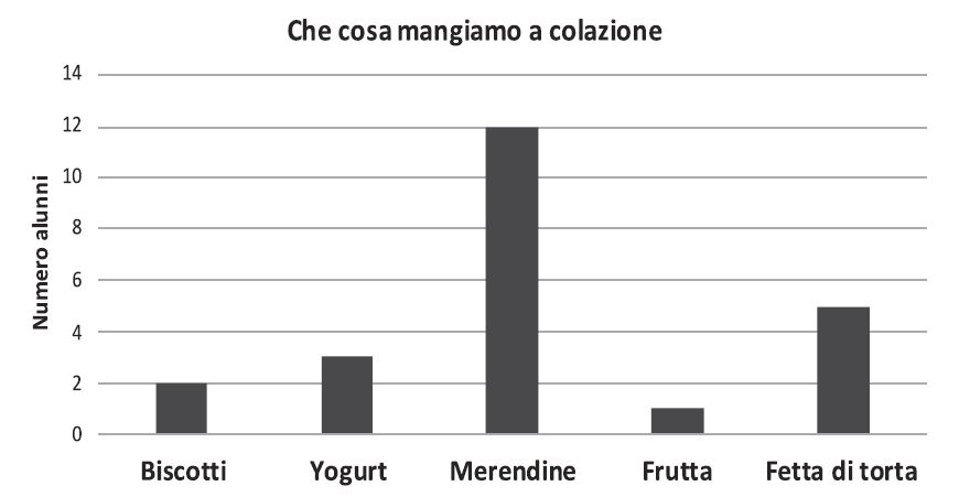 D15. La maestra ha chiesto ai suoi alunni che cosa mangiano a colazione. Gli alunni hanno costruito il seguente grafico con i dati raccolti.