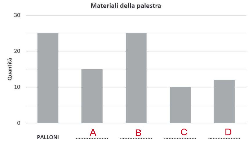 D23. Questo grafico mostra i materiali che ci sono in una palestra, ma non è completo perché alcuni materiali sono stati sostituiti da una lettera.