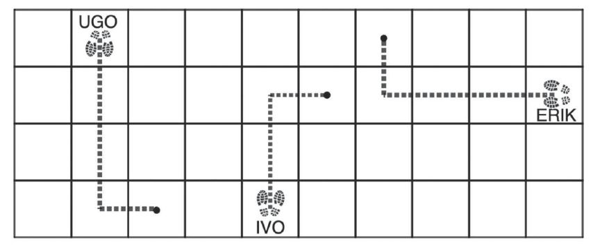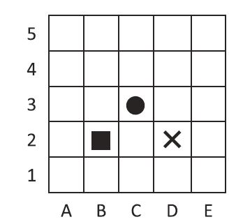 D8. Sofia ha dato queste istruzioni ai suoi compagni: Spostati in avanti di 3 piastrelle, poi spostati alla tua destra di una piastrella.